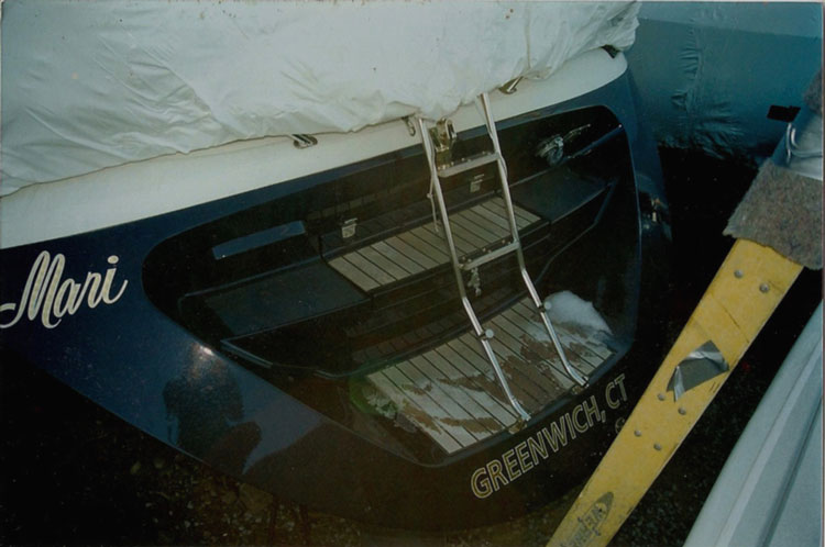 the transom of the older model Jenneau 41 sloop. The new owner