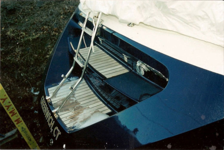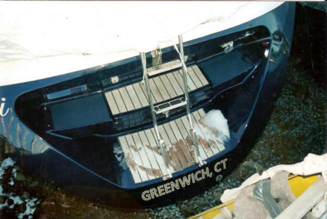 the transom of the older model Jenneau 41 sloop. The new owner